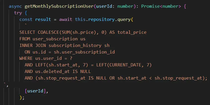 Scheduler | 이번 프로젝트에서 직접 API를 호출하지 않고 원하는 시간에 함수가 자동으로 실행되도록 하기 위해, Nest.js에서 제공하는 스케줄링 패키지를 활용하기로 결정했습니다. 결제일 알림 전송 및 플랫폼 랭킹 산정 기능에 사용해 본 결과, Cron 표현식을 통해 정확한 시간에 함수가 실행되는 것을 확인할 수 있었습니다. |