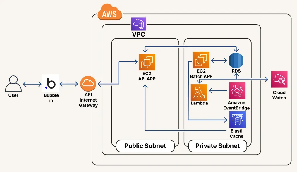 | 서버를 운영하면서 유지보수와 관리의 어려움을 해결하기 위해 AWS EC2를 도입했습니다. EC2는 신속한 배포와 자동화 지원, CI/CD 통합으로 인프라 관리 효율성을 크게 향상, EC2를 통해 빠른 배포와 오토스케일링을 검증하였습니다. RDS, S3, Lambda 등 다양한 AWS 서비스와의 통합으로 고가용성과 장애 복구를 자동화할 수 있었습니다. 이를 통해 개발 및 운영 속도와 비용 효율성을 크게 향상했습니다. |